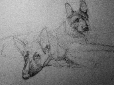 But this article is mainly about our collaboration in artistic field. He'd saw my paintings of big cats (Security, Spotted which you can also find in section "ART-WILDLIFE") and he thought that I would be able to manage to capture his gorgeous german shepherds Izak and Zephyr.